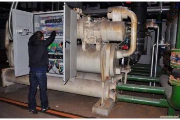 對于吸收式制冷機組,日常保養需對溴化鋰機組進行氣密性檢驗,若機內溶液渾濁,顏色由金黃色變為暗紅、綠或黑色,則用沉淀法和過濾法清除雜質,并測量鉻酸鋰等含量及PH值,過濾后的溶液應保存于密封容器內;用機械或化學清洗方法清理機組的冷凝器、發生器、吸收器及蒸發器;為防止銅管凍裂,應避免在0℃以下維保機組,通常在每年3 - 4月進行維保,如遇冬季故障,維修時須將水蓋中存水及管道熱交換器中存水放凈;及時檢測和更換易損部件;及時檢測和更換燃燒器內過濾器、電極、噴嘴及清除爐膛灰塵。短期停機維保(停機時間在2周以內)時,須將機內溴化鋰容易充分稀釋并確保機內真空度,機組暴氣檢修一般不應超過8h,檢修后須立即做正壓檢漏和真空檢測。長期停機維保時,將蒸發器內的冷劑水全部旁通至吸收器,并使溶液均勻稀釋,以防在環境溫度下結晶。